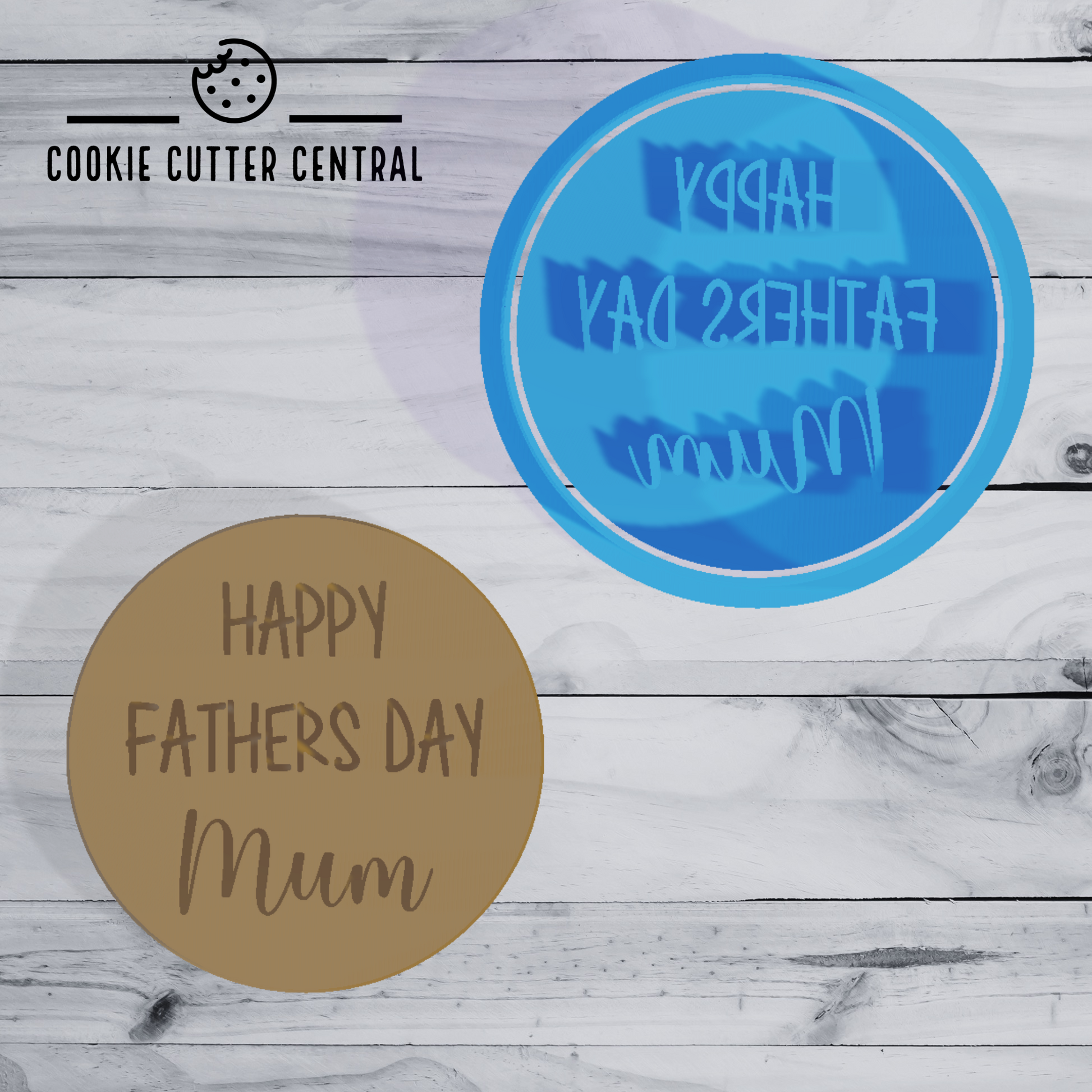 Happy Fathers Day Mum Cookie Cutter and Embosser - 6.5cm Round