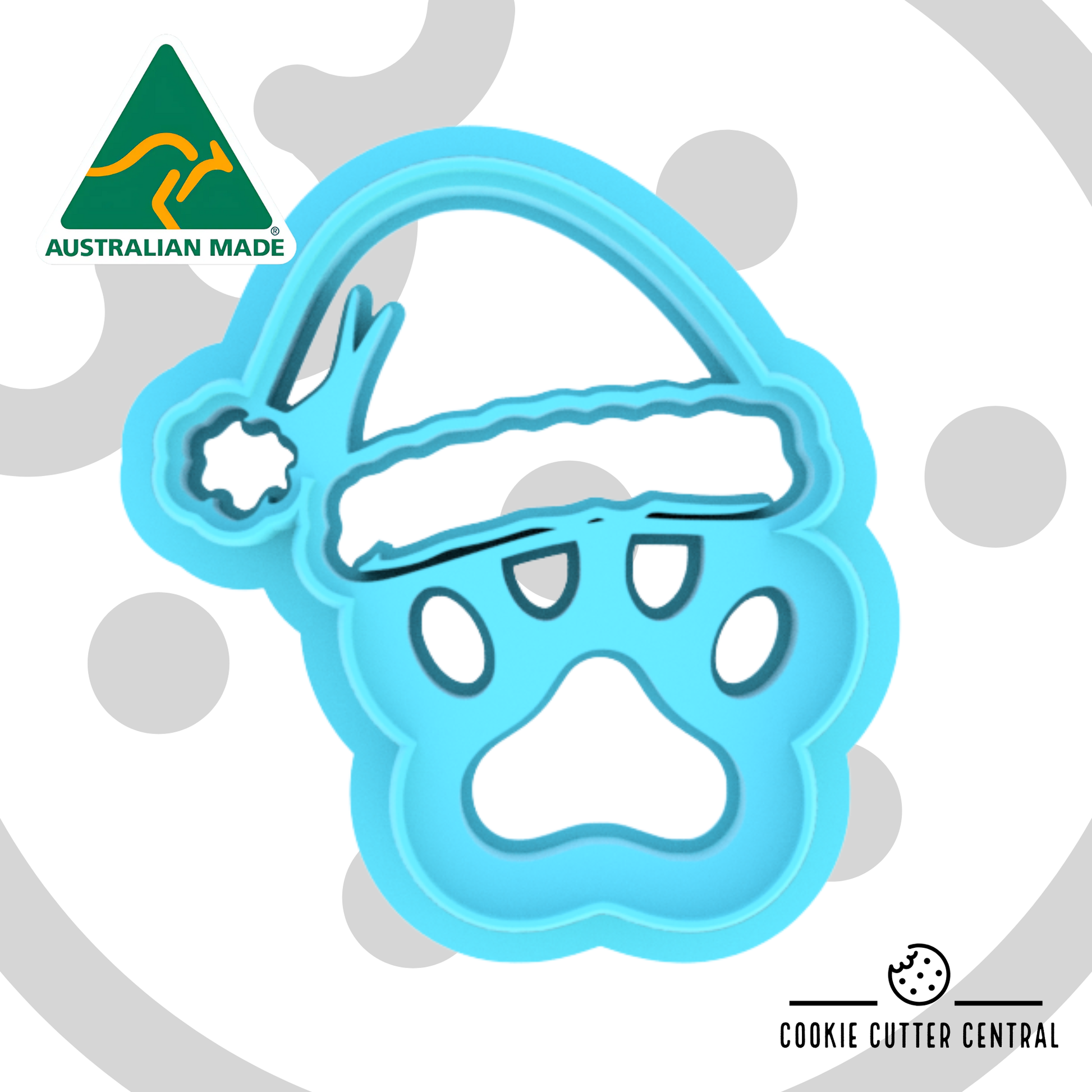 Paw Print with Santa Hat Cookie Imprint Cutter - 8.7cm x 8cm