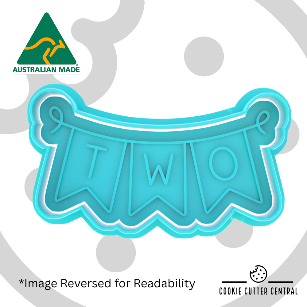 Celebrate your little one's second birthday in style with our delightful TWO Bunting Cookie Cutter and Embosser. This charming set adds a festive touch to your cookies and fondant decorations, perfect for birthday parties, photo shoots, or sweet keepsakes.