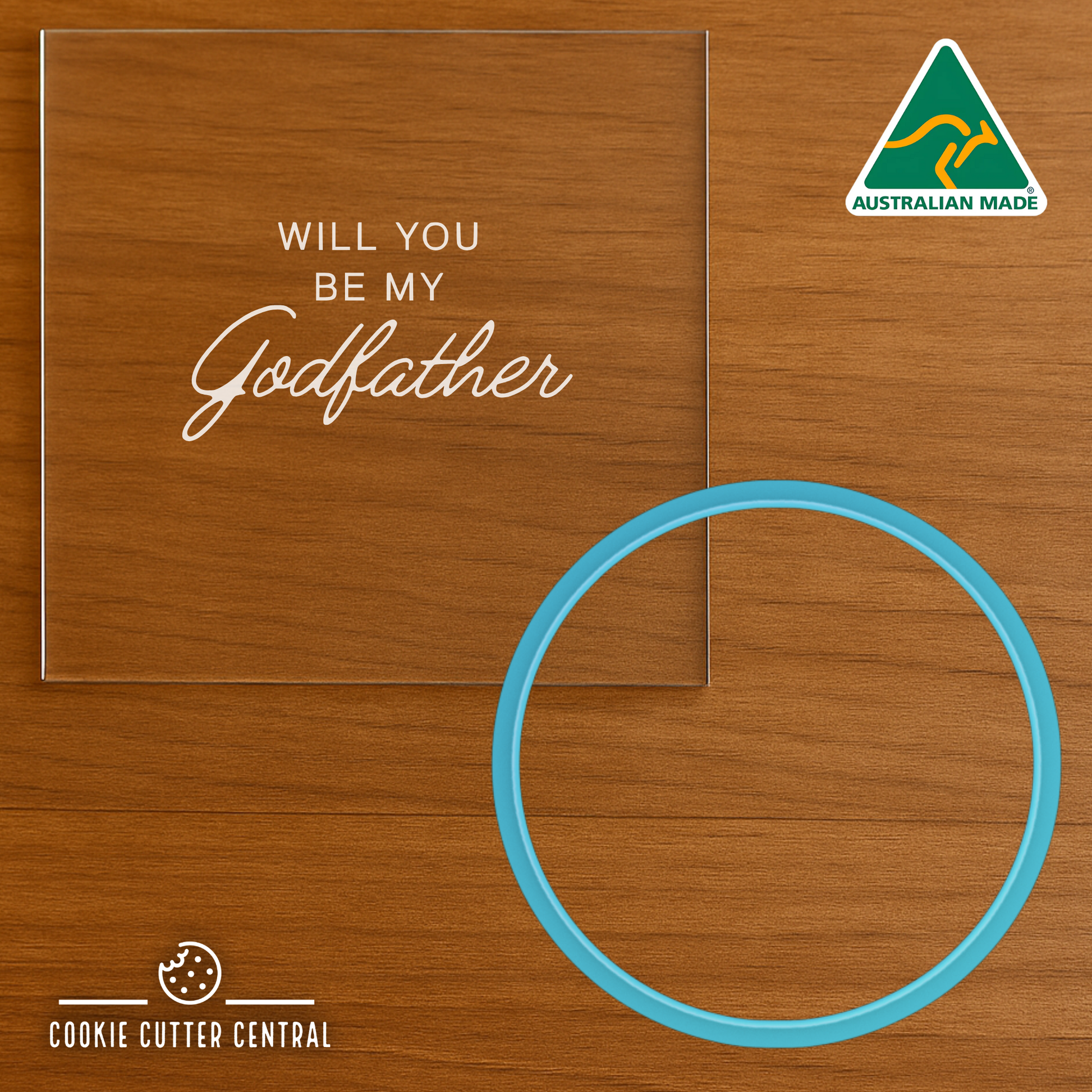 "Will you be my Godfather" Cookie Cutter and Acrylic Debosser - 7cm Round